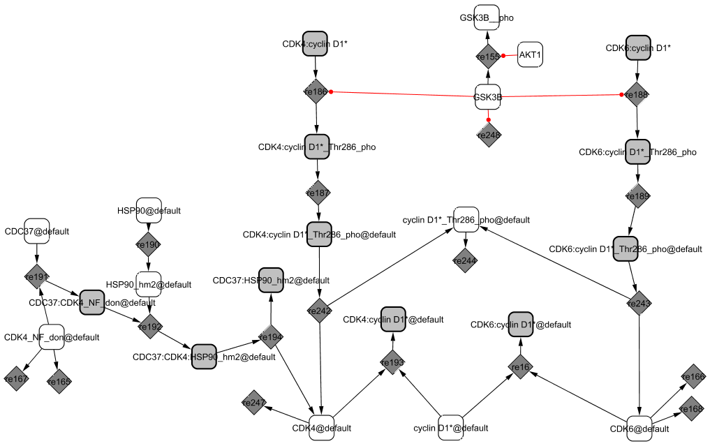 GSK3B__pho re155 cyclin D1*_Thr286_pho@default CDC37:HSP90_hm2@default CDC37:CDK4:HSP90_hm2@default CDC37:CDK4_NF_don@default CDC37@default HSP90_hm2@default HSP90@default CDK6:cyclin D1*_Thr286_pho@default CDK4:cyclin D1*_Thr286_pho@default GSK3B cyclin D1*@default CDK4@default CDK6@default CDK4_NF_don@default AKT1 re243 re244 re242 re194 re193 CDK4:cyclin D1*@default re192 re191 re190 re189 CDK6:cyclin D1*_Thr286_pho re188 re187 re248 re186 CDK4:cyclin D1*_Thr286_pho CDK6:cyclin D1* CDK4:cyclin D1* re16 CDK6:cyclin D1*@default re247 re168 re167 re166 re165